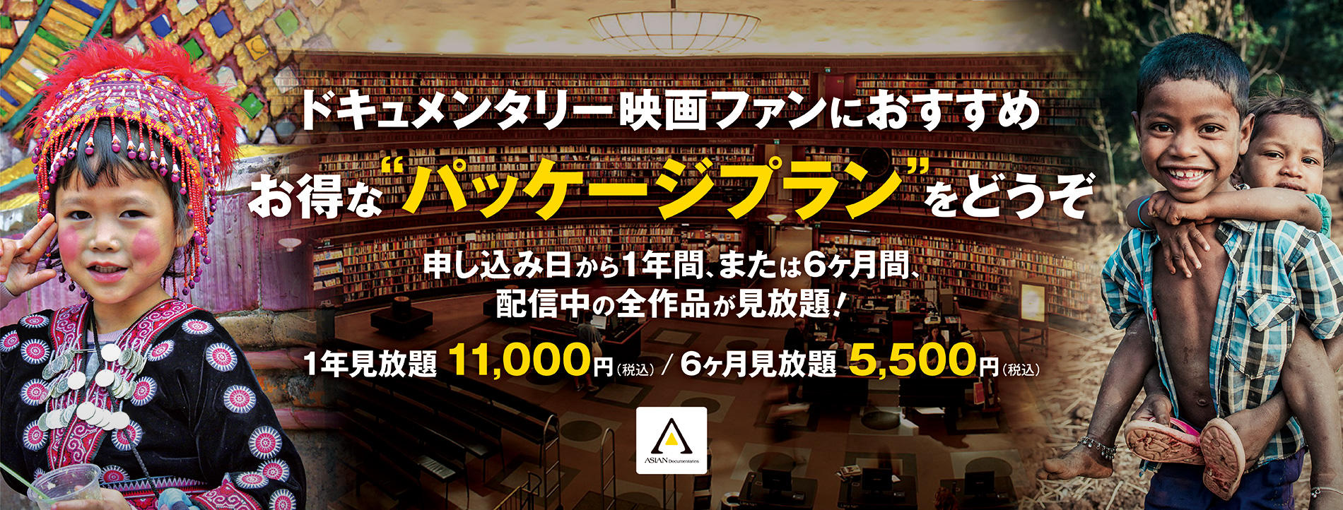 アジアンドキュメンタリーズで配信中の作品が6ヶ月間見放題になるパッケージプランです。