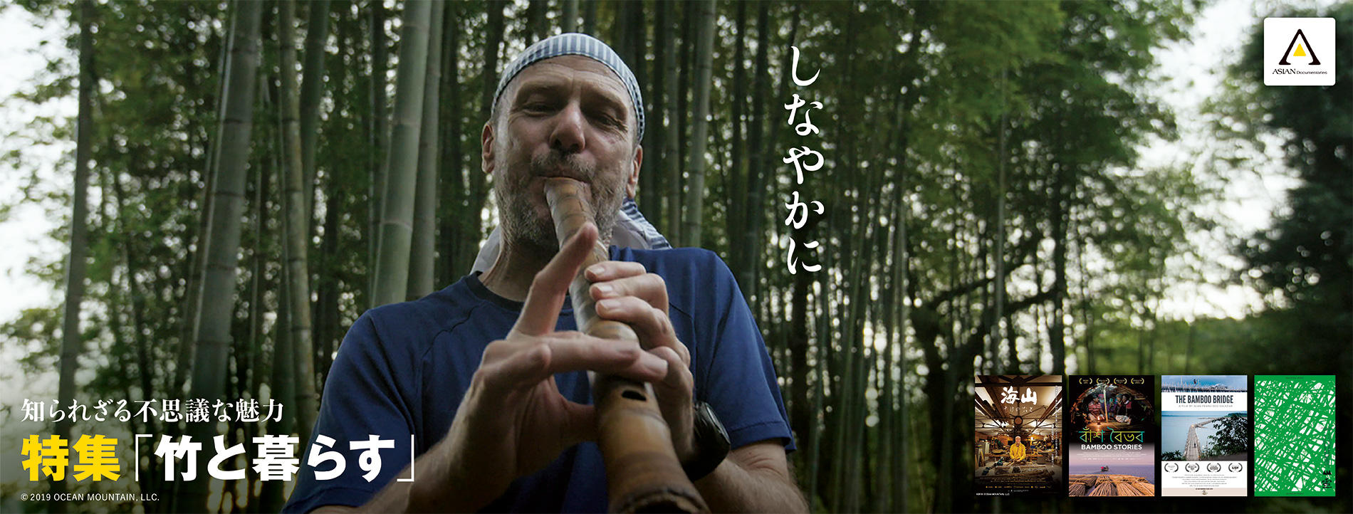 一方、竹は日本だけではなく、東南アジア、中国東部、台湾など、アジアの東から南にかけての比較的雨の多い湿潤な地域に分布し、それぞれの国や文化、ライフスタイルの中で受け入れられてきました。日本とはまた少し違った趣を感じさせるアジアの竹文化、そして竹と暮らす人々の営みには、新鮮さと同時に親近感を覚えます。こうした異国の竹文化から、生活感性の再発見につながることもあるでしょう。竹材の利用が減少している現代において、今、あらためて竹の魅力が見直されつつあります。それは、「癒し」についての効果です。例えば、都市空間の植栽。直線的な美しさがデザイン的にもスタイリッシュで人気を集めています。竹を使った様々な癒しグッズ。また、自然の恵みから生まれた竹製品の良さも、見直されています。今回の特集でお届けする竹にまつわるドキュメンタリー映画をご覧いただき、ぜひ、じつに奥深い〝竹の魅力〟について、あらためて考えてみませんか。